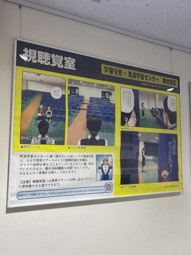 入ってすぐの廊下にあった「宇宙兄弟 × 筑波宇宙センター」舞台探訪パネル!