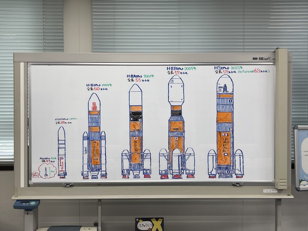 同じ部屋にあったホワイトボードに描かれたロケットのイラストも印象的でした。